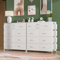 Lulive White Dresser for Bedroom with 10 Drawers, Chest of Drawers with Side Pockets and Hooks, PU Storage Dresser, Organizer Unit for Living Room, Hallway, Closet (White)