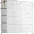 - 10 Drawer Dresser & Ample Storage Space: The fabric dresser is designed with 10 separate collapsible drawers including 3 different sizes to satisfy your classified storage needs, which provides you endless organizational possibilities. Also, the wood top provides a hard surface fit to place commonly used items, keeping them in your reach.